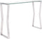Bring glam appeal to any seating ensemble with this chic Console table. Crafted of metal in a gleaming chrome finish, this side table features a Stainless Steel frame. The tempered glass tabletop provides a perfect platform for home decor accents for any entryway or living room. This modern Console table in chrome finish gives modern look to any living room.