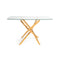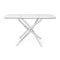 Ouvrez votre espace avec cette belle table de salle à manger contemporaine. La finition argentée des pieds à motifs géométriques uniques donne un peu d'éclat à l'aspect léger et aéré de la table à plateau en verre. Il sera magnifique avec des chaises. Il pourra accueillir confortablement 6 personnes et se mélangera avec différents styles et finitions de chaises pour créer le look parfait qui vous convient !