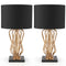 La lampe de table à 1 ampoule Halaku de 23 pouces avec base en métal (paquet de 2) a une structure en métal doré délicate mais légère. L'abat-jour est composé de tissu et de couleur noire. L'abat-jour diffuse une lumière chaude et confortable à travers le tissu noir. Avec une hauteur totale de 23 pouces (58,5 cm), il est tout aussi décoratif, qu'il soit allumé ou éteint.