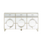 Commode/commode à 6 tiroirs Ella Champagne doré - miroir transparent. Les meubles en miroir peuvent animer et éclairer n'importe quel espace. Ils peuvent s'intégrer à tout type de décor - traditionnel, transitionnel ou moderne. Ils vous aident à obtenir une extension visuelle de l'espace où ils ont été placés. Ils peuvent rendre un espace sombre plus lumineux car ils réfléchissent la lumière. Même avec une seule source de lumière, la pièce paraîtra plus éclairée grâce aux multiples reflets.